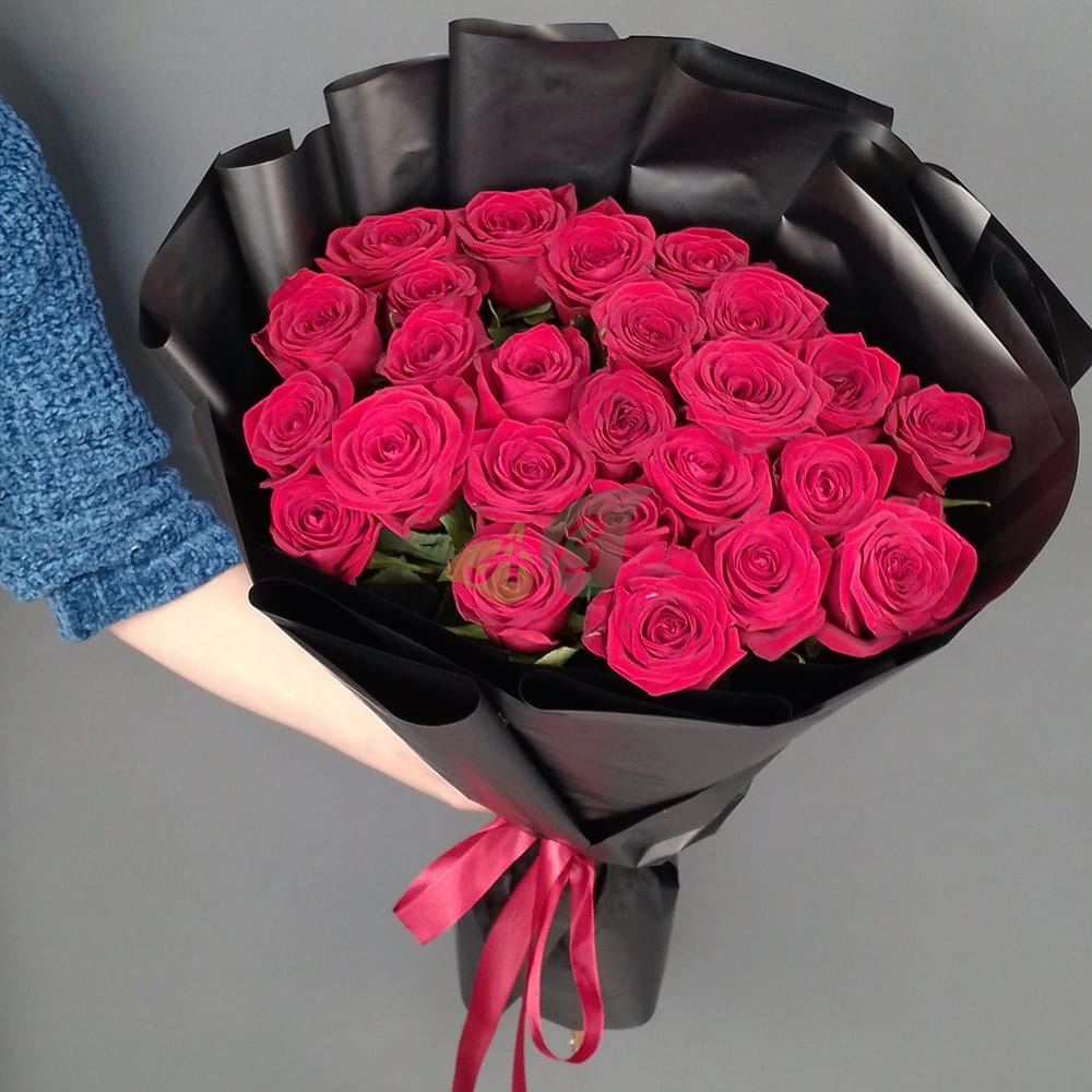 Красные розы в букете издавна считались символом любви. Роскошная чёрная упаковка подчёркивает изысканность и великолепие каждой розы. Ни одно сердце не сможет устоять против такого шикарного букета из роз!